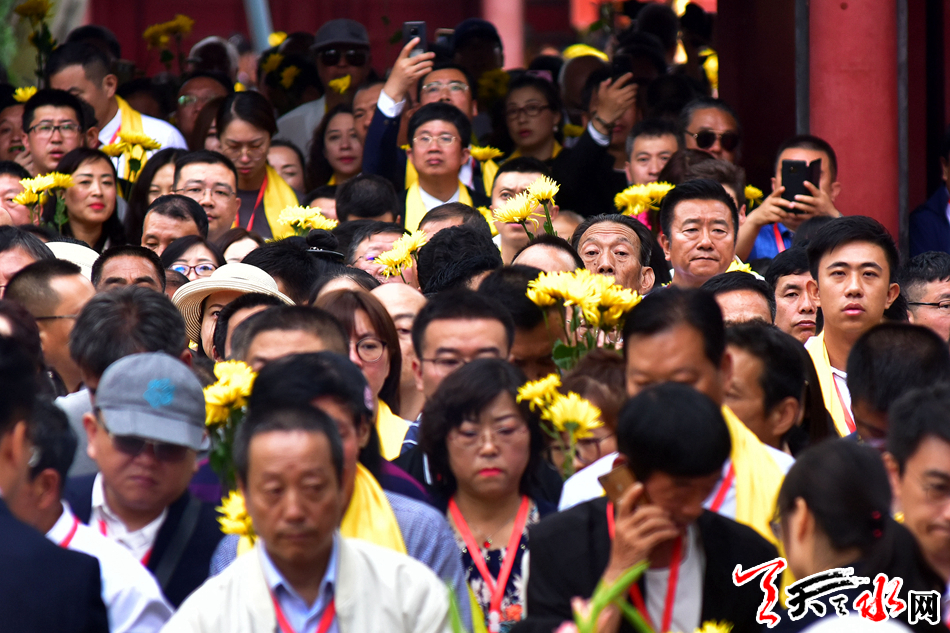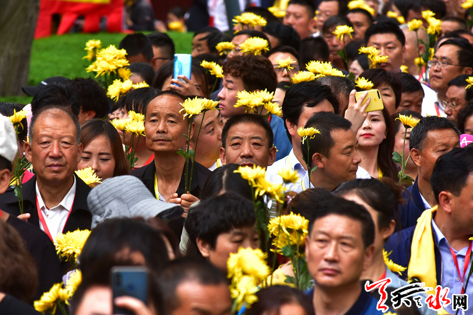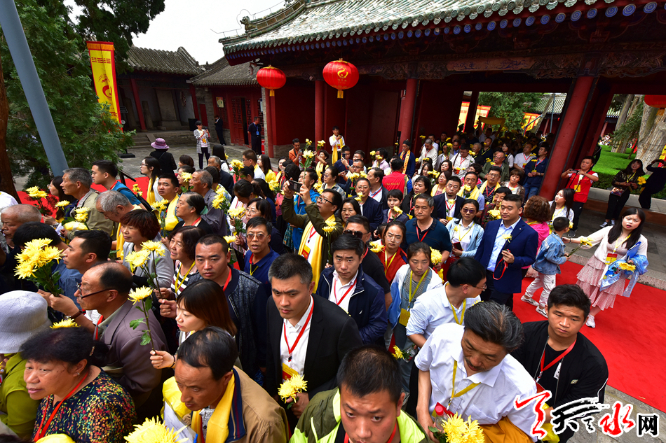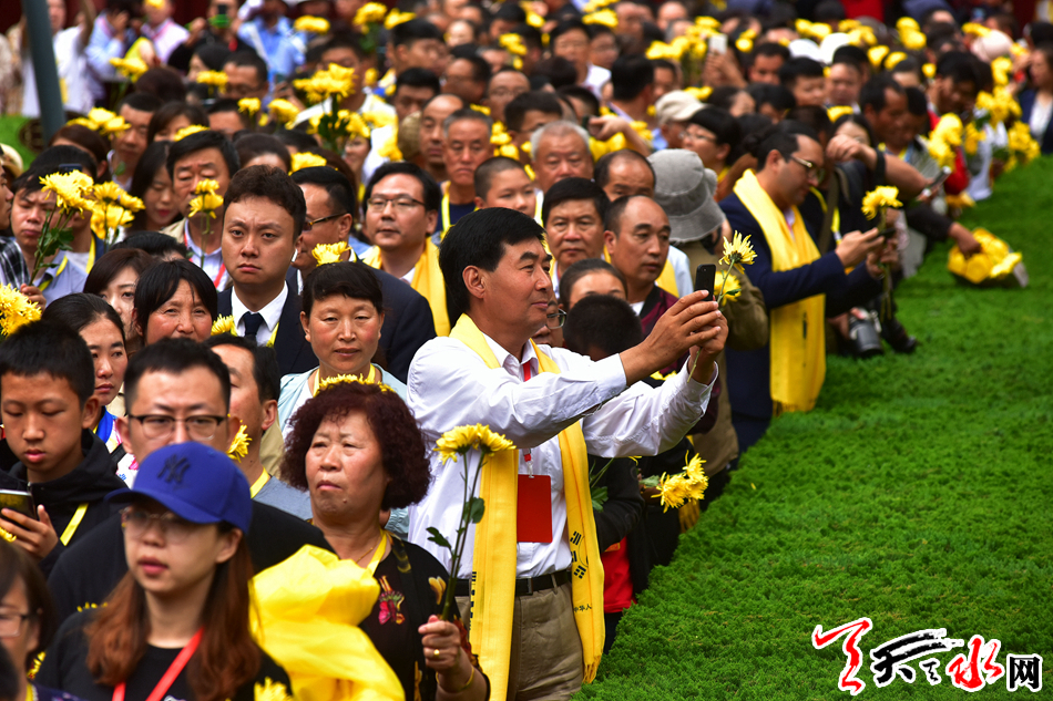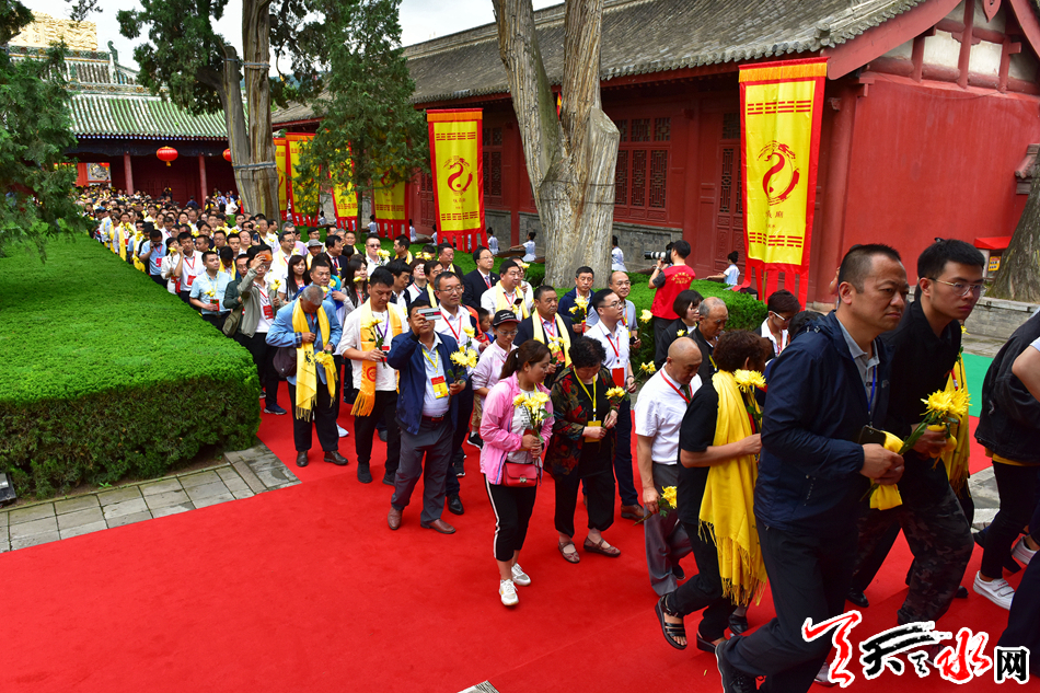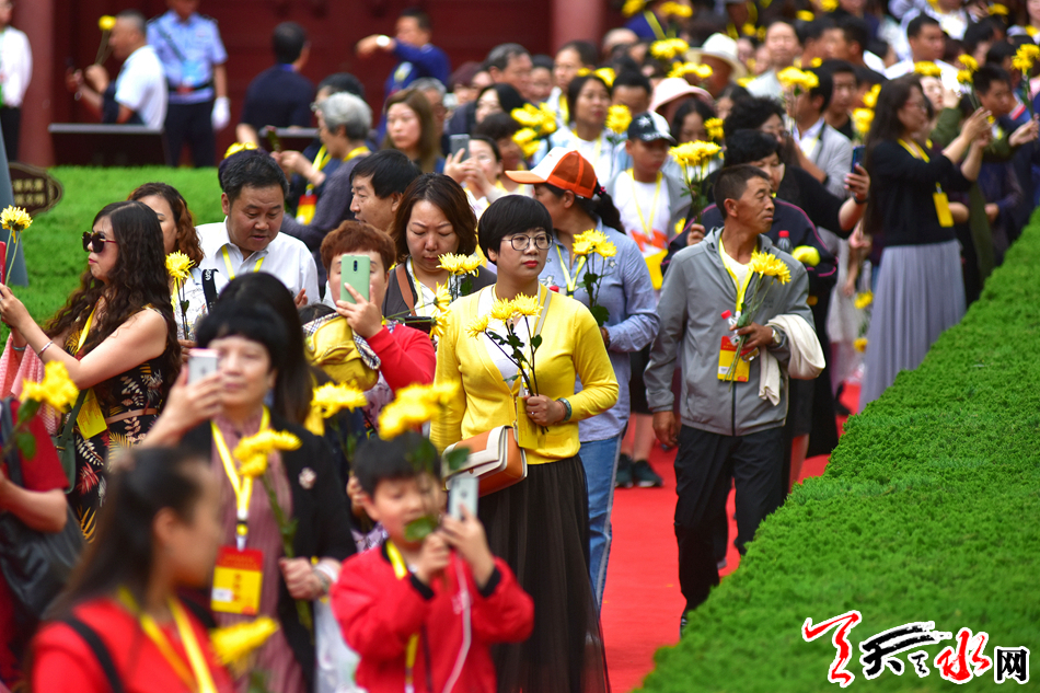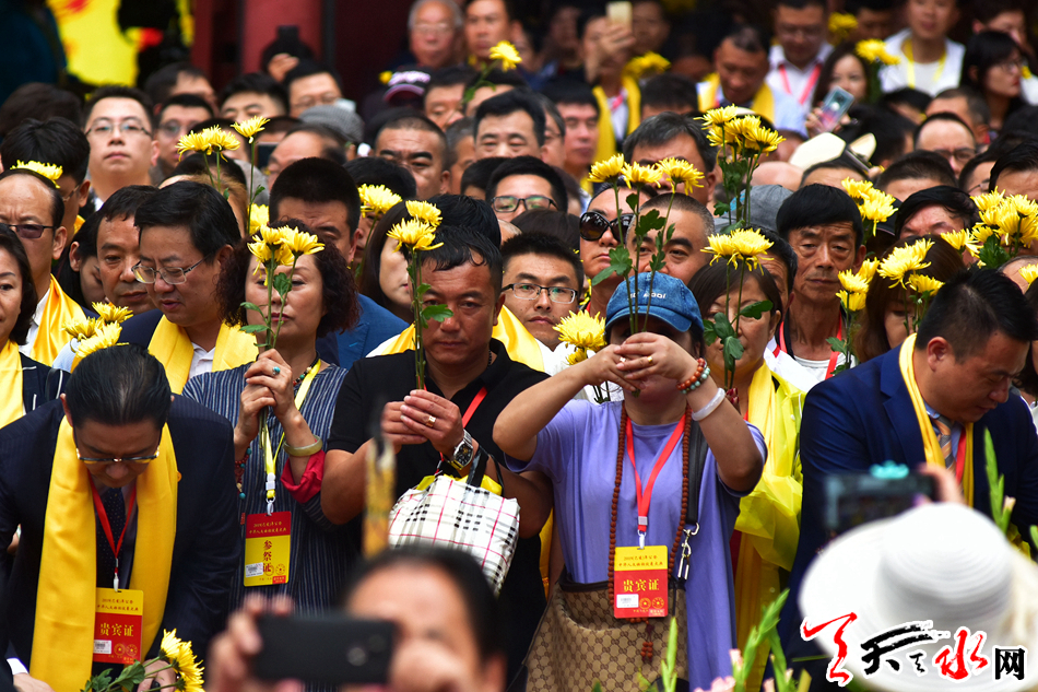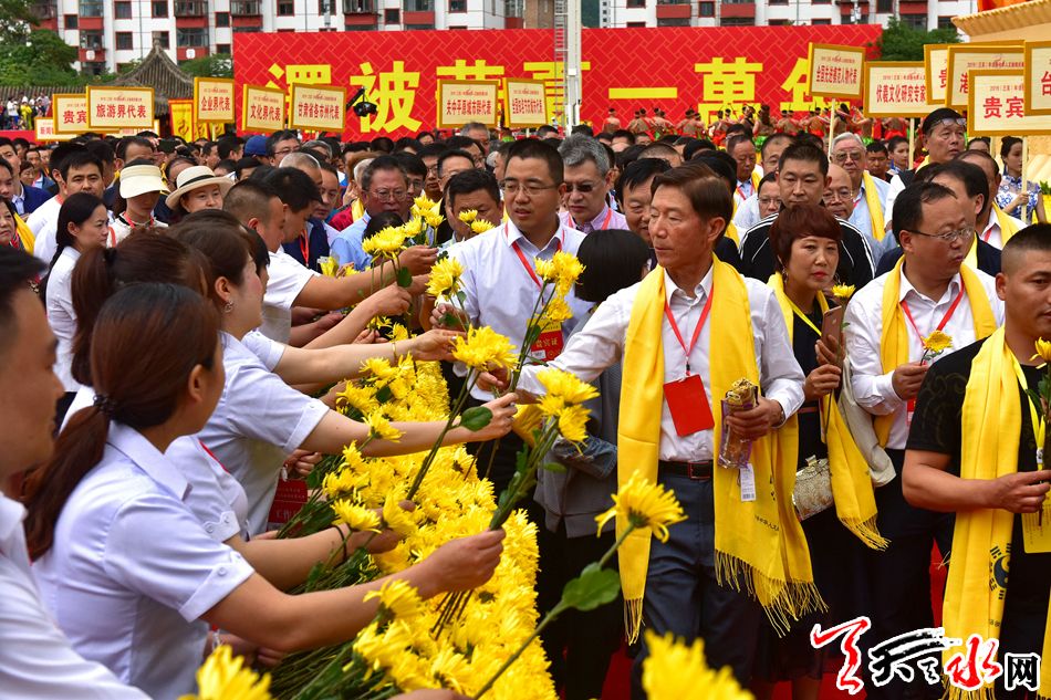 6月22日,2019(己亥)年公祭中华人文始祖伏羲大典后,现场市民和来宾纷纷领取鲜花,走进伏羲庙敬献鲜花拜谒伏羲圣像,表达对人文始祖伏羲的崇敬和景仰之情。