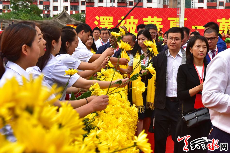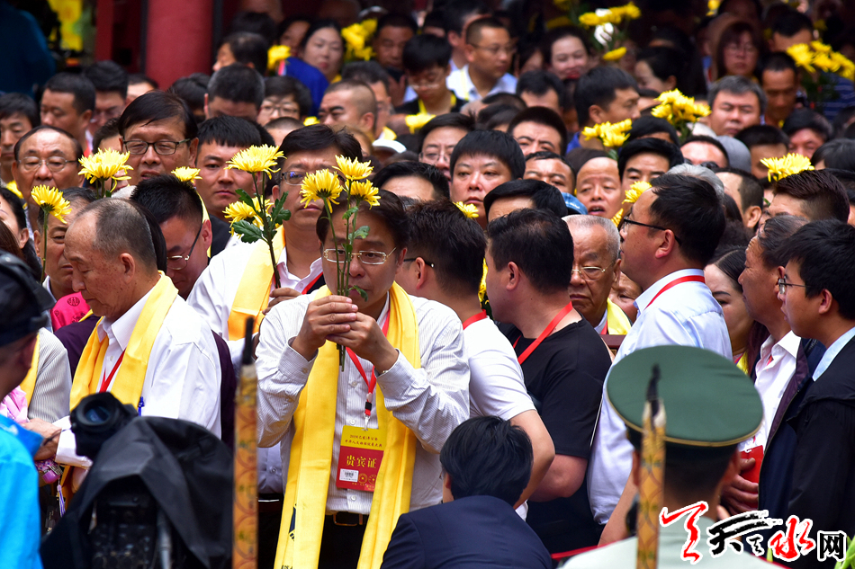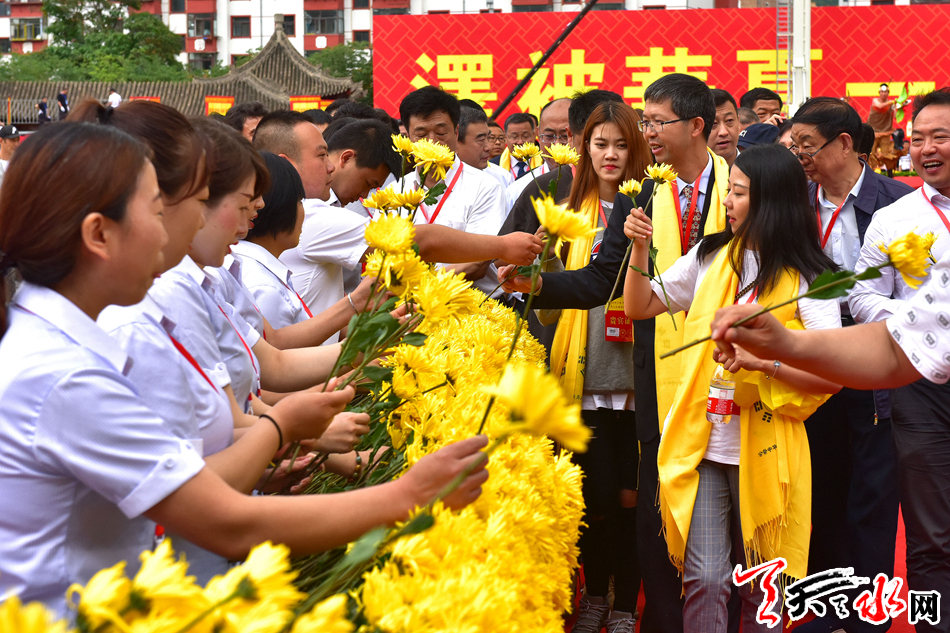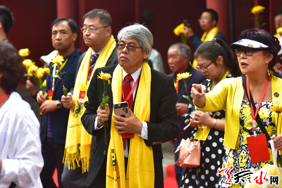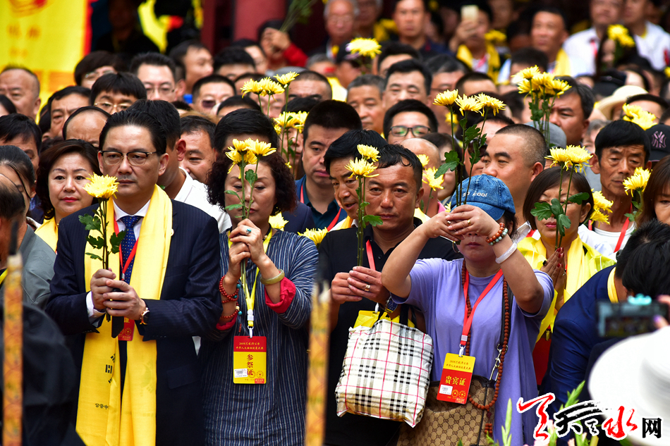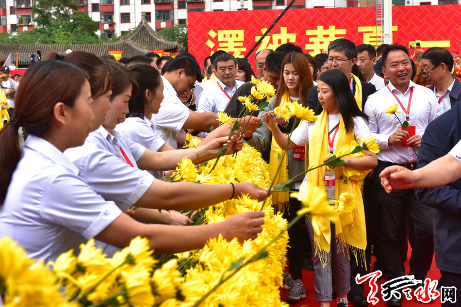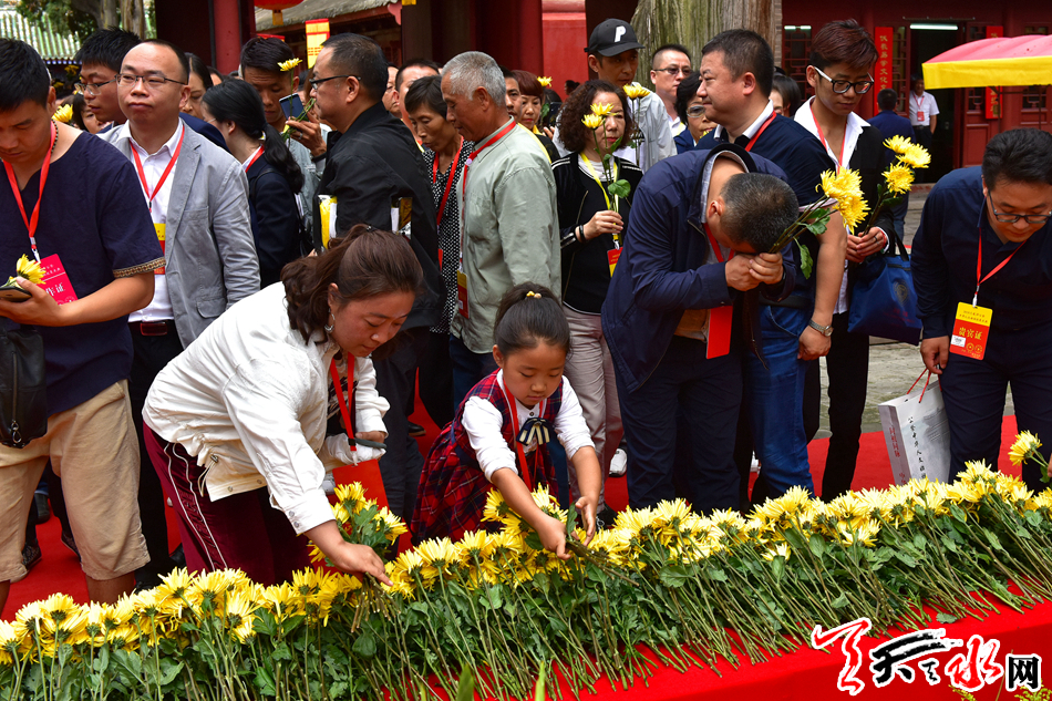 6月22日,2019(己亥)年公祭中华人文始祖伏羲大典后,现场市民和来宾纷纷领取鲜花,走进伏羲庙敬献鲜花拜谒伏羲圣像,表达对人文始祖伏羲的崇敬和景仰之情。