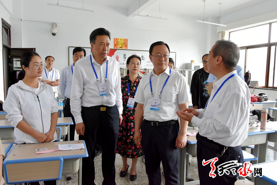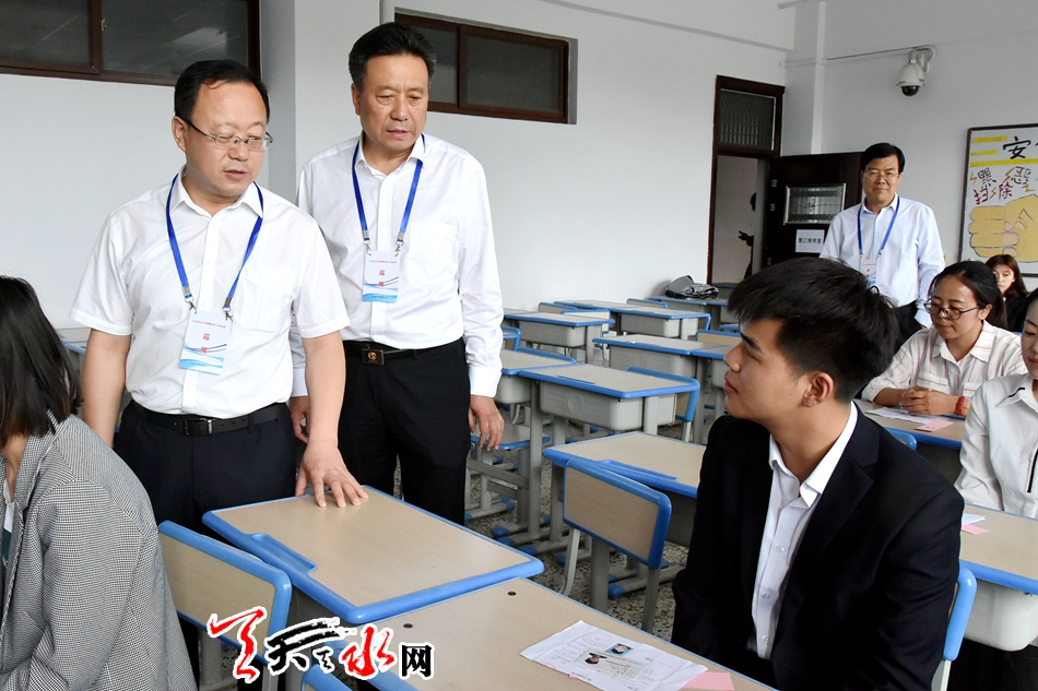 天天天水网讯【全媒体记者马放】6月22日,2019年甘肃省选拔招募普通高校毕业生到基层从事“三支一扶”“特岗计划”服务项目考试开考,市委常委、组织部部长贾义翔对我市考点进行了巡视。