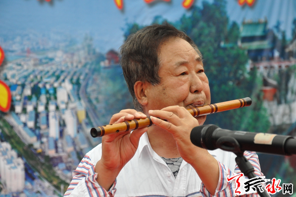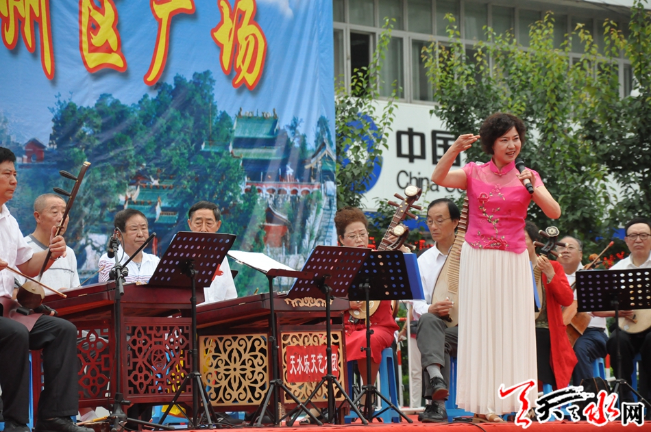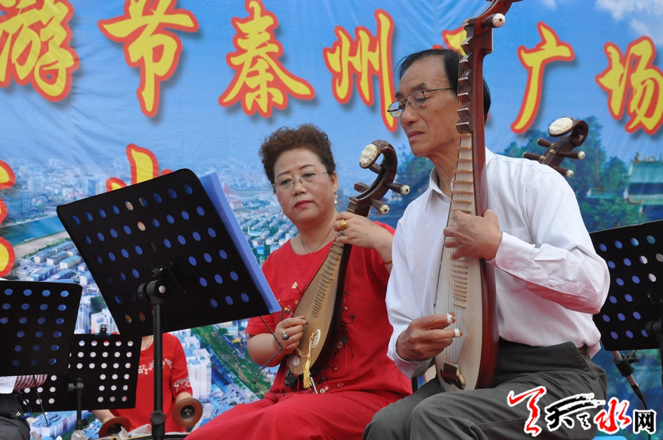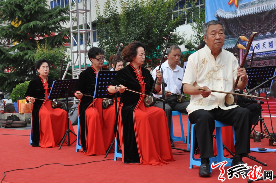 丝竹悠扬,管弦铿锵,来自天水乐天艺术团的几十位声乐艺术家以不同的艺术表现风格,把《喜庆江南》、《赛马》、《战马奔腾》、《我和我的祖国》等14个精彩优美传统音乐奉献给广大市民,整个龙城广场鼓乐喧天,器乐和鸣,浓浓的艺术氛围和欢快的节日气氛沁染着古城天水。