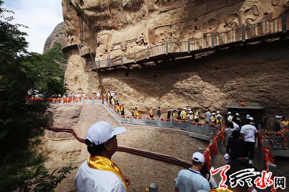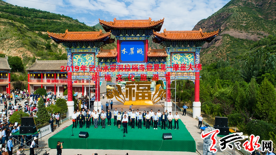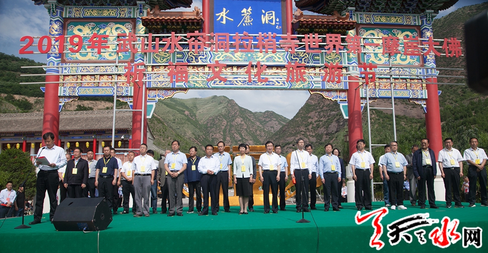 天天天水网讯【见习记者罗馨 崔文涛】6月23日上午, 2019中国·武山水帘洞拉梢寺世界第一摩崖大佛祈福文化旅游节在国家4A级景区水帘洞隆重开幕,来自全国各地的嘉宾齐聚武山、祈福纳祥。