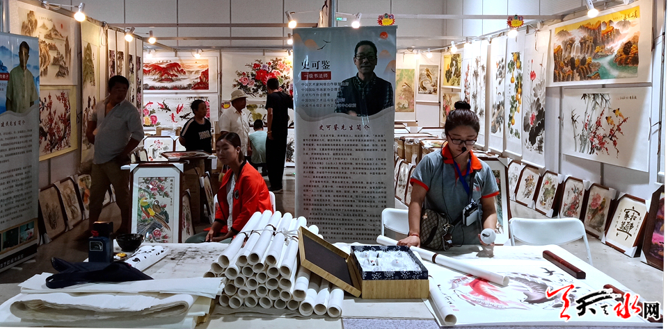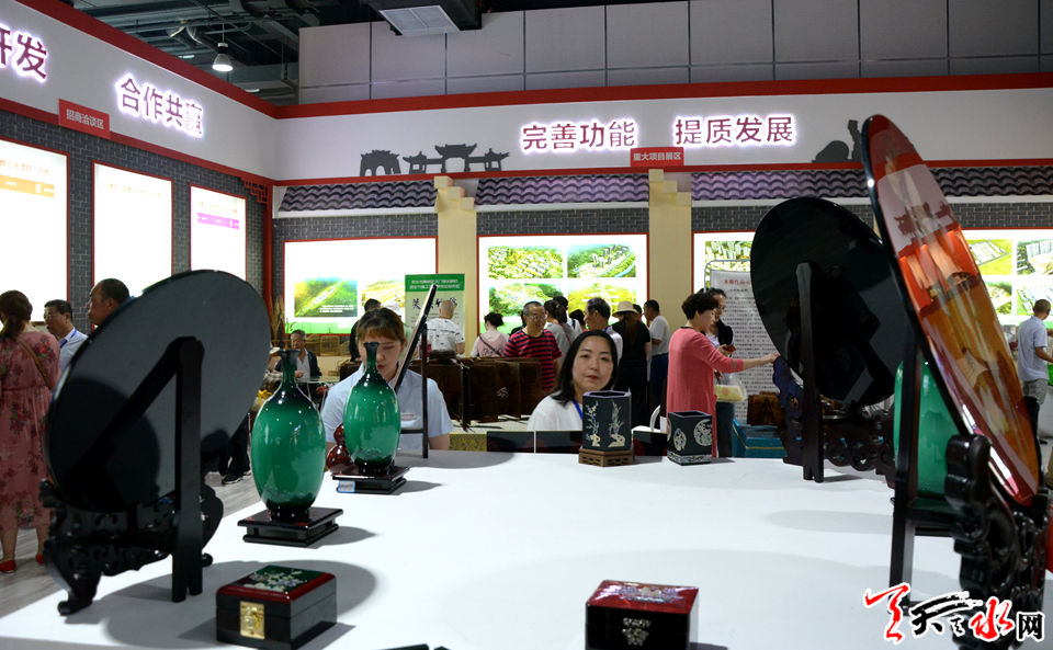 走进秦州区展厅,光彩夺目的1000多件各类名优产品争奇斗艳,赵氏泥人、吴氏布艺、天水珠绣画等文化创意及旅 游产品令人目不暇接,展示了全区工业、农业、商贸、文化、旅游等产业发展成果及脱贫攻坚、项目建设、生态环 保等方面取得的成就。