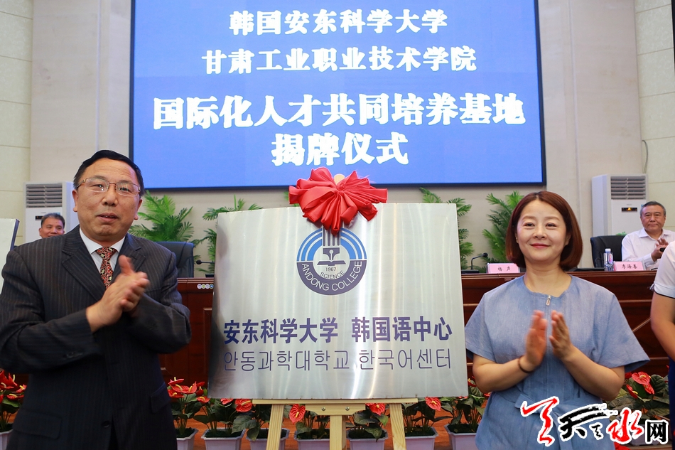 天天天水网讯【全媒体记者马哲】6月25日,中国科协“海智计划”甘肃工作基地甘肃工业职业技术学院工作站正式成立,甘肃工业职业技术学院“韩国安东科学大学韩国语中心”揭牌、甘肃工业职业技术学院与韩国安东科学大学国际化人才共同培养基地启动。这标志着甘肃工业职业技术学院在推进产学研合作、引进聚集高层次人才方面迈出了新步伐,取得了新成效。