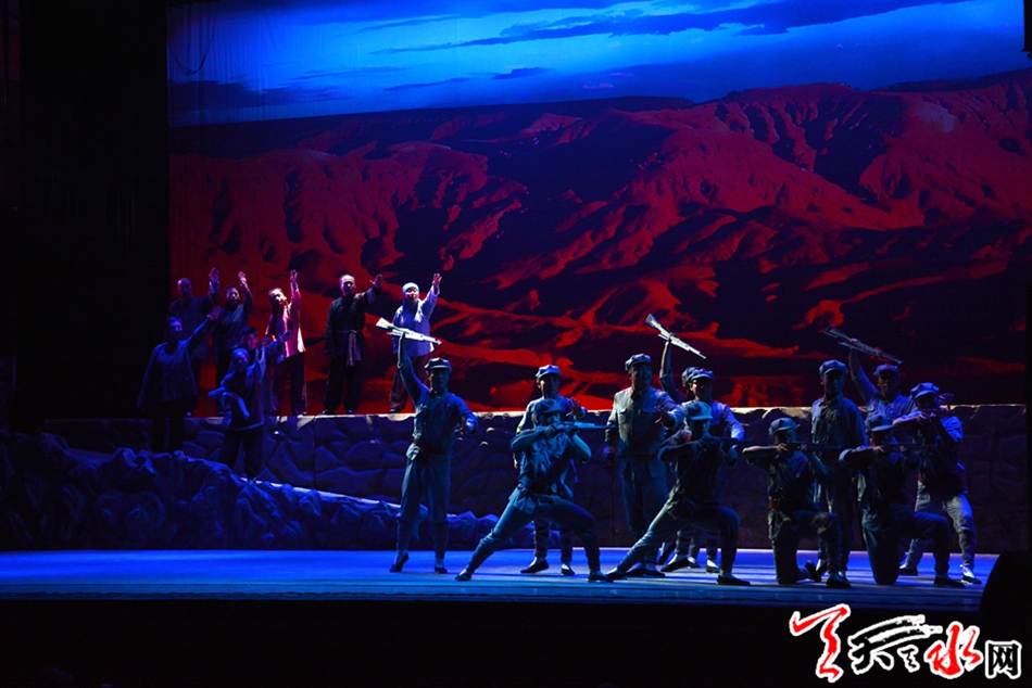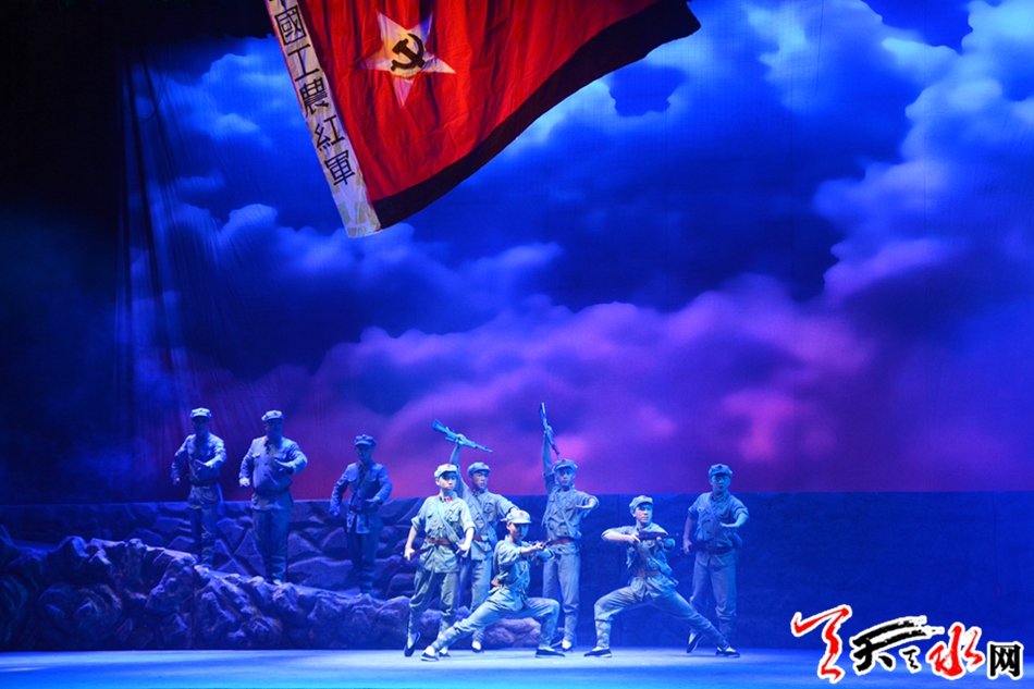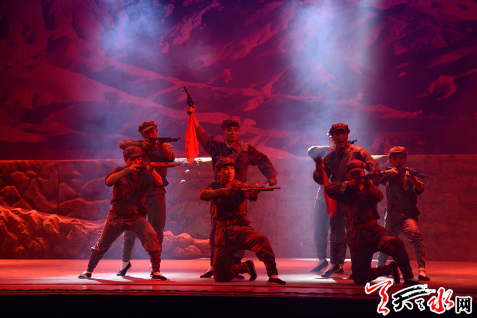 大型秦腔革命历史剧《激流飞渡》表现的是是面对敌军围困,大河横亘的危急局面,红军气吞山河的革命英雄主义精神和甘谷人民对于红军和中国革命的支持。