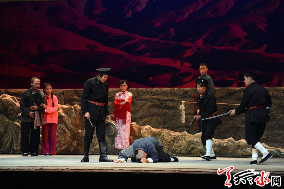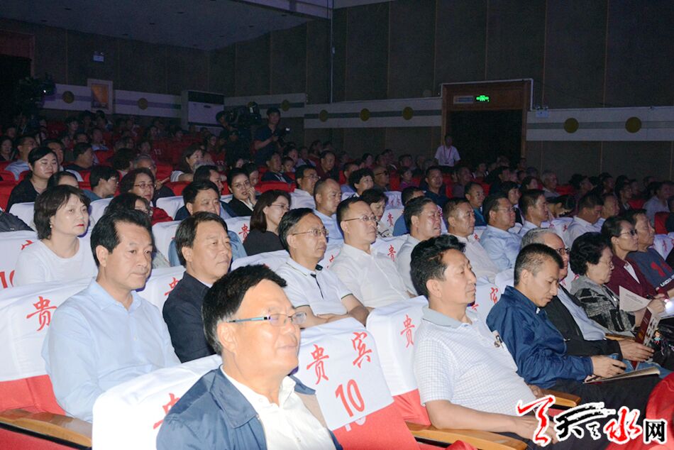 天天天水网讯(见习记者罗馨)6月26日晚,2019(己亥)年公祭伏羲大典暨第三十届天水伏羲文化旅游节优秀剧目展演之甘谷县新编大型秦腔现代剧《激流飞渡》在秦州大剧院精彩上演。市领导蒋晓强、王军、张建杰、贾义翔、蒲朝晖、逯克宗、王振宇、苏定武等及广大观众一同观看了演出。