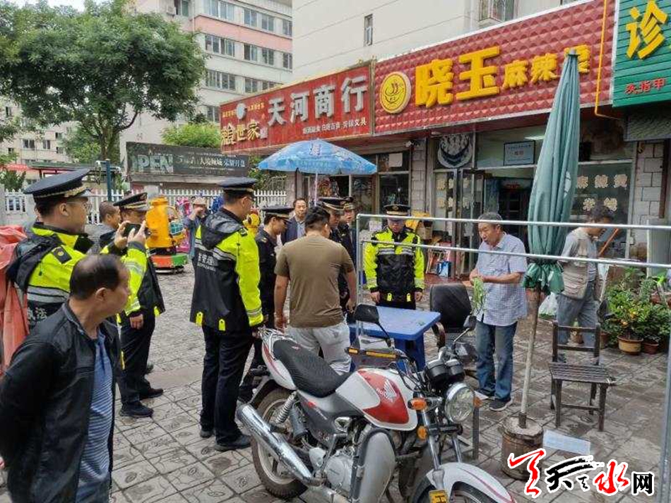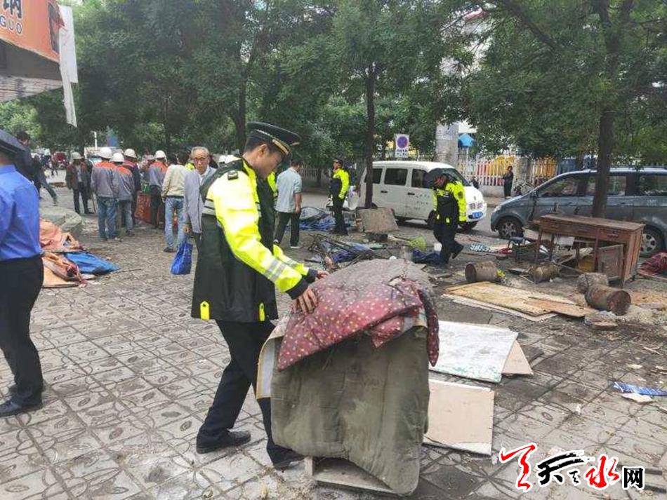 三是部门联动消顽疾。针对天河路存在的各类突出问题,6月19日开始,秦州执法局联合七里墩街道、环卫局、市场建设中心、交警机动大队集中人员拆除天河路彩钢房2间30平方米、钢构房2处45平方米、帐篷98顶;暂扣占道桌椅12套、占道儿童摇摇车30台;清理杂物12车;拖离占道“僵尸车”2台;安装隔离护栏520米,彻底根治了影响该区域居住环境秩序的各类顽疾。