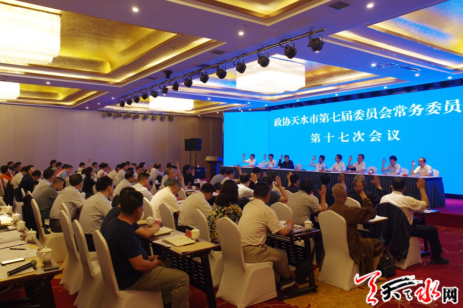 天天天水网讯【全媒体记者冯丽娟】6月27日,市政协七届十七次常委会议召开。市政协党组书记、主席张明泰出席会议。市委常委、副市长刘骁应邀出席会议。市政协副主席王振宇主持会议。市政协副主席马百龄、苏定武、唐宏伟,市政协秘书长刘锋,市政协党组成员贾忠慧出席会议。