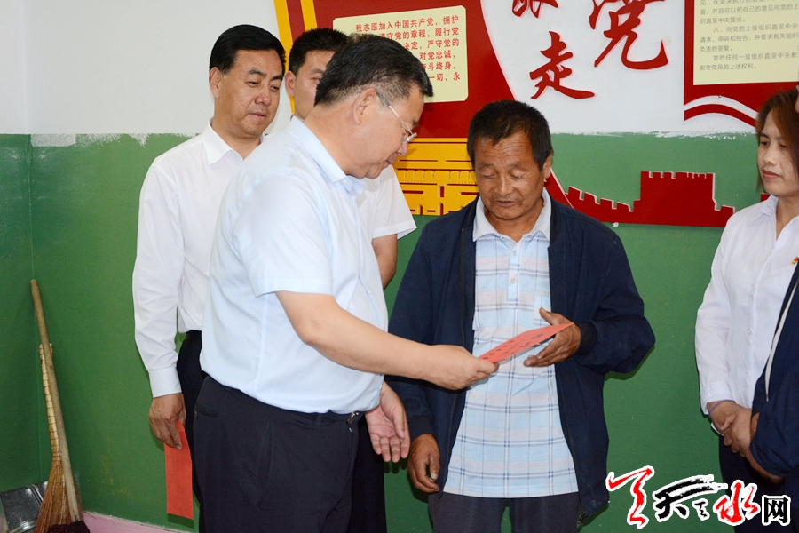 当天,张建杰先后看望了永清镇马沟村困难党员田治强,丰旺乡磨上咀村老党员倪召玉,清水县特教学校教师、优秀党员范丽梅,与他们亲切交谈,详细询问他们的身体状况、家庭情况、生产生活工作及工作情况。
