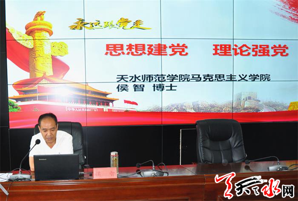 天水师范学院副教授、硕士生导师侯智博士应邀为机关全体党员干部讲党课。(天水市纪委监委宣传部)