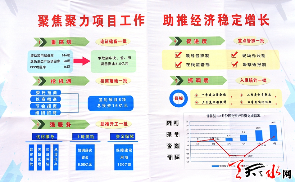 当天,督查组集中检查观摩了武山县和甘谷县的18个重点项目。其中,武山县桦林赵坪矮化密植苹果园项目、武山县金陇公司蔬菜精深加工项目、甘谷县花椒交易中心项目、甘谷土桥子脊兽产业园项目均为两县立足传统优势谋划实施的产业类项目。