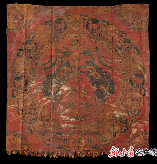 展览中最吸引人的文物,莫过于两大幅中亚团窠对鹿纹挂锦,堪称世所罕见,代表了7世纪中期至8世纪丝绸之路沿线织造工艺的最高水平。据介绍,这种大幅挂锦主要用于装饰吐蕃贵族的营帐。