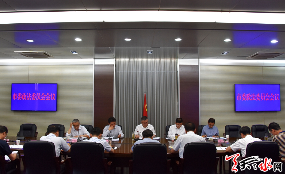 天天天水网讯【全媒体记者吴丽娜】7月4日上午,市委常委、政法委书记蒲军主持召开市委政法委员会会议。他强调,市级政法各部门要树牢“四个意识”,坚定“四个自信”,做到“两个维护”,坚持党对政法工作的绝对领导,树牢主责主业意识,继续保持当前良好工作态势,进一步理清工作思路,细化措施,靠实责任,全力抓好政法各项重点工作措施落实。