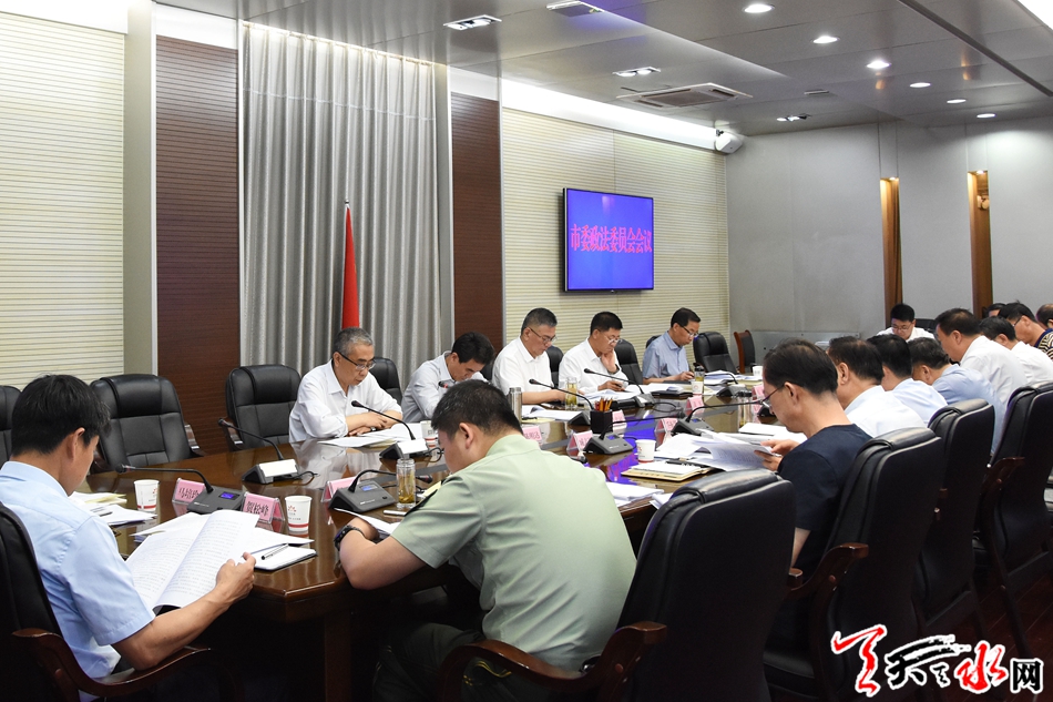 会议学习了《中国共产党政法工作条例》等有关文件精神,传达了省扫黑除恶专项斗争领导小组第10次(扩大)会议精神,研究通过了《中共天水市委政法委员会工作规则》,对上半年全市政法工作进行了总结,对当前和今后一个时期全市政法重点工作作了安排部署。