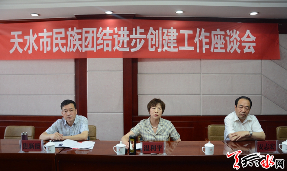 天天天水网讯【见习记者 崔文涛】7月4日下午,我市召开民族团结进步创建工作座谈会。市委常委、统战部部长温利平,市人大常委会副主任安志宏参加座谈会。
