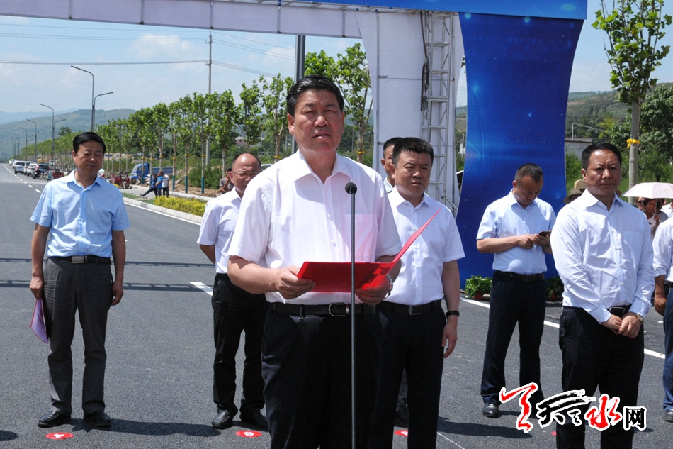 省人大常委会副主任吴明明参加开通仪式。市委书记王锐宣布麦积区潘集寨至街亭出口旅游公路(东柯大道)建成通车。