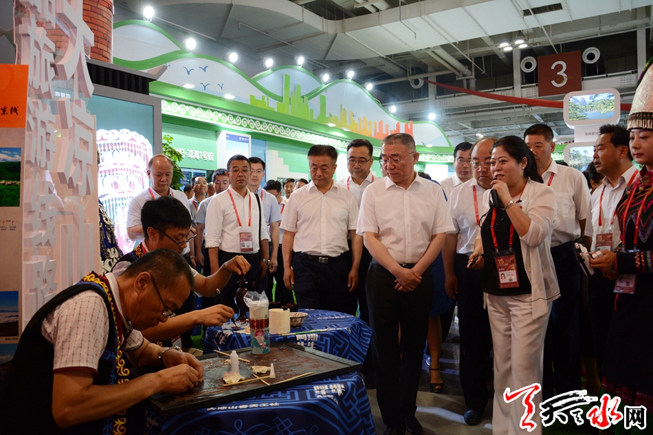 座谈会前,双方代表团共同巡视了兰洽会凉山展馆和天水展馆。