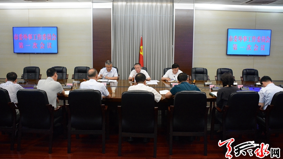 会议传达学习了习近平总书记在中央外事工作委员会第一次会议和中央外事工作会议上的重要讲话精神以及省委外事工作委员会第一次会议精神,审议通过了《中共天水市委外事工作委员会工作规则》和《中共天水市委外事工作委员会办公室工作细则》,安排部署了全市外事工作各项任务。