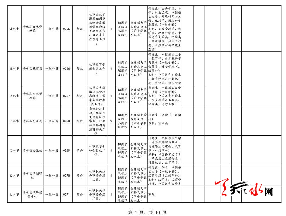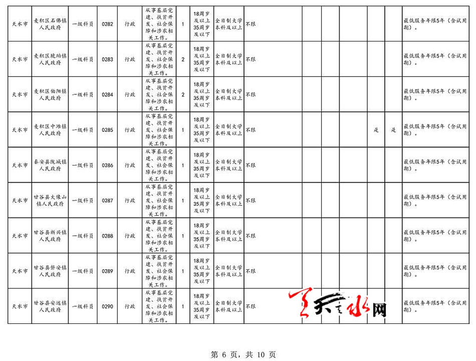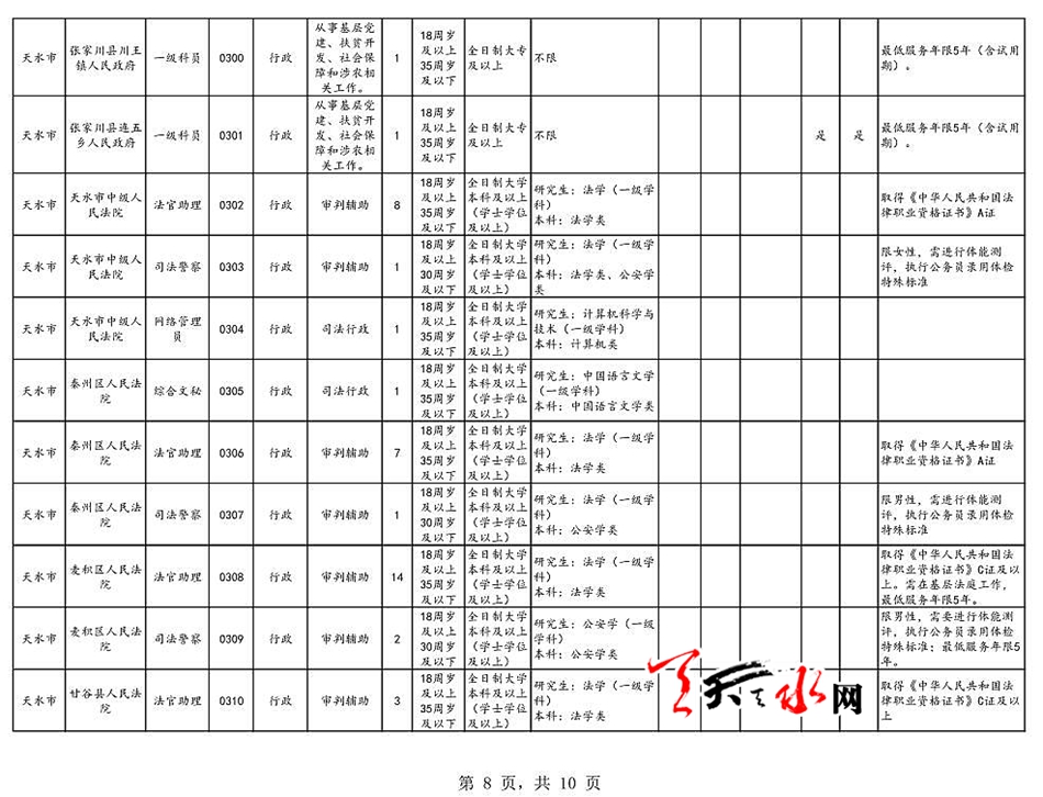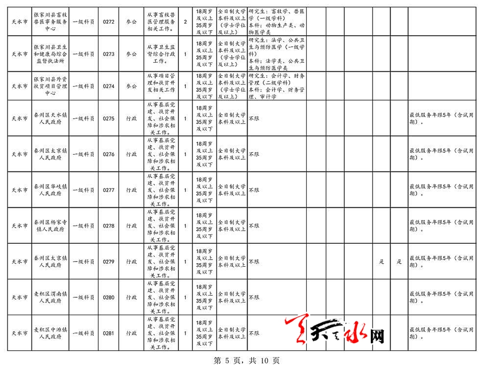 附件: 甘肃省2019年度考试录用机关公务员和参照公务员法管理单位工作人员职位计划简表(天水市)