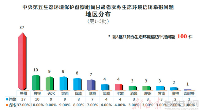 每日甘肃网兰州讯(新甘肃·甘肃日报记者文洁)7月15日,中央第五生态环境保护督察组向甘肃省移交了第三批生态环境信访举报问题共54件,其中来电51件,来信3件,涉及我省12个市(州)。