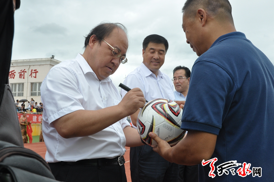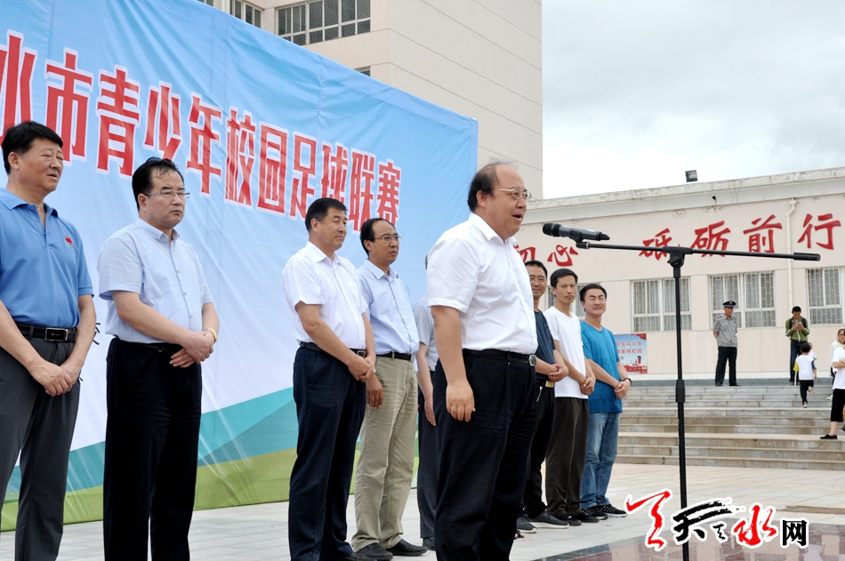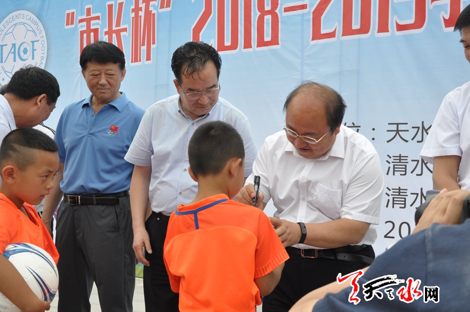 天天天水网讯【记者张超】7月17日上午,“市长杯”2018—2019学年天水青少年校园足球联赛在天水市农业学校开赛。市委常委、副市长宫辉,市人大常委会副主任、清水县委书记刘天波参加了开幕仪式。