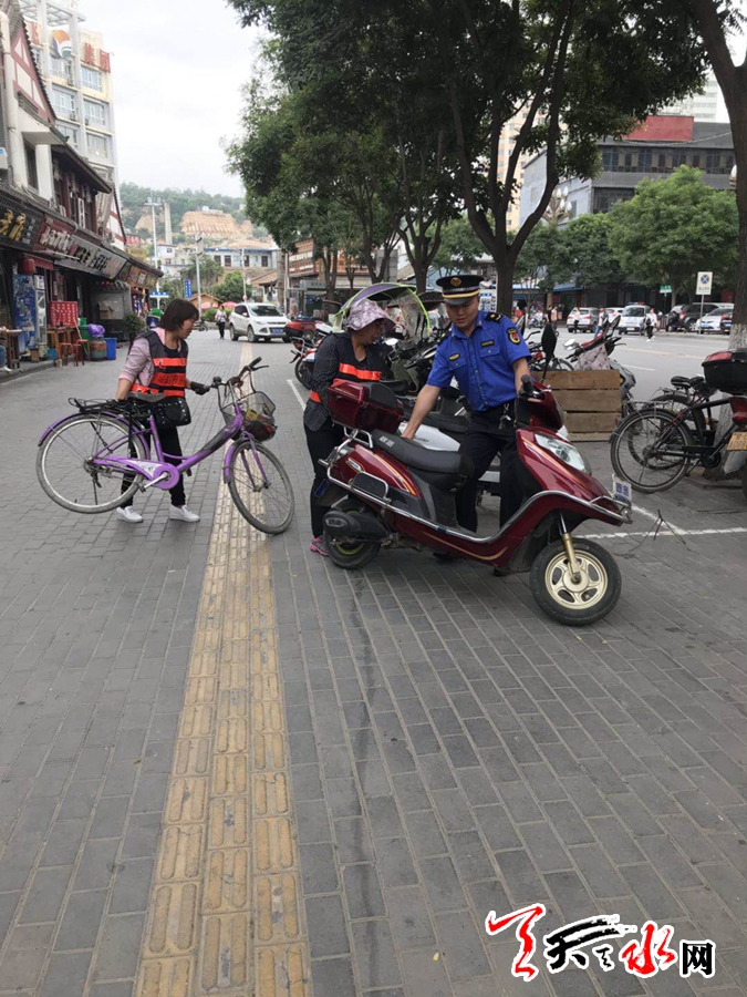 天天天水网讯 非机动车乱停乱放是影响市容的“顽疾”之一,特别是人流密集的繁华路段,随意停放的非机动车既影响市容市貌,又对交通造成了一定的阻碍。为强化城区主干道非机动车停放秩序管理,保持井然有序的停车环境,秦州区执法局大城中队的14名公益性岗位人员开展了为期7天的“车辆停放靠我靠你靠大家”的专项宣传活动。