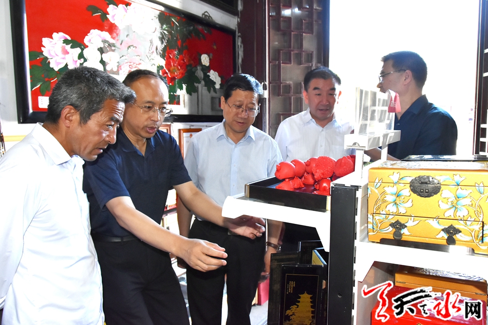 天天天水网讯【全媒体记者马放】7月25日,市人大常委会组织我市部分省人大代表、市直有关部门负责人,就全市旅游商品研发、生产、销售等情况开展调研视察。市人大常委会副主任蒲朝晖参加调研视察活动。