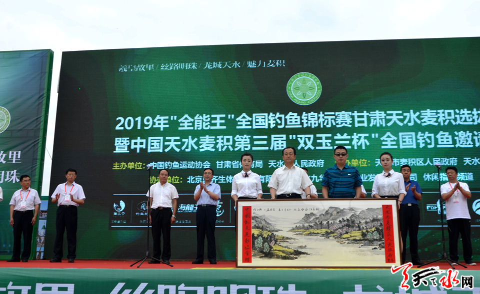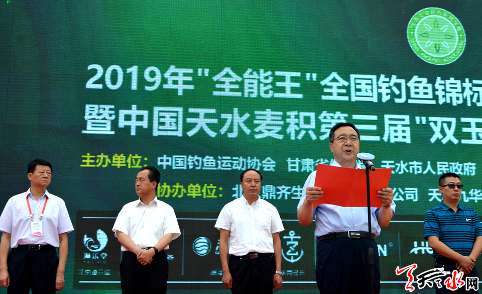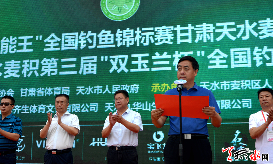 天天天水网讯【记者 张文都】7月27日,为期两天的2019年“全能王”全国钓鱼锦标赛甘肃天水麦积选拔赛暨中国天水麦积第三届“双玉兰杯”全国钓鱼邀请赛在甘泉镇九华山渔园开幕。天水市人大常委会主任蒋晓强,天水市委常委、宣传部部长张建杰,国家体育总局社会体育指导中心二部主任、中国钓鱼运动协会秘书长苏宝生,天水市政府副市长逯克宗,天水市政协副主席、麦积区委书记张智明,甘肃省社会体育管理中心主任高岩杰,天水市人大常委会秘书长杨坤出席开幕式。