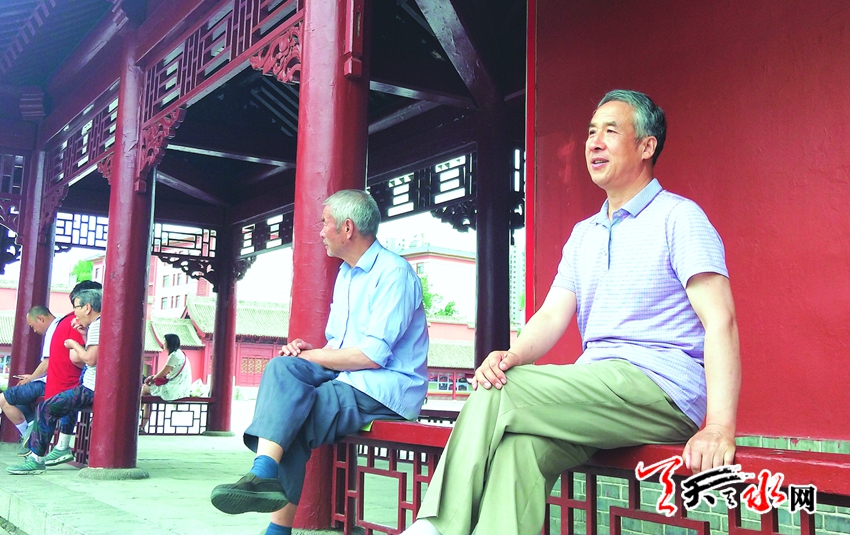 贾效宜说着一口流利的天水话,细问才知他的老家在山西忻州市,在天水生活近60年,如今已成地道的天水人。“1962年5月我从兰州来到天水,在天水火柴厂任职。1971年调到了当时的地委工作,1989年调到秦州区任秦州区政协主席,1999年退休,一转眼已经退休20年。”他说。