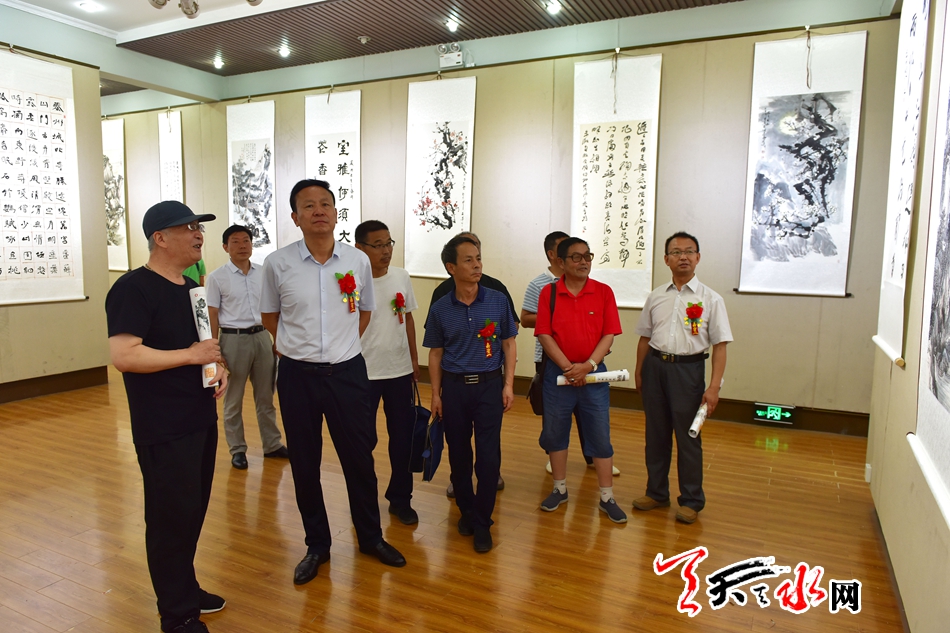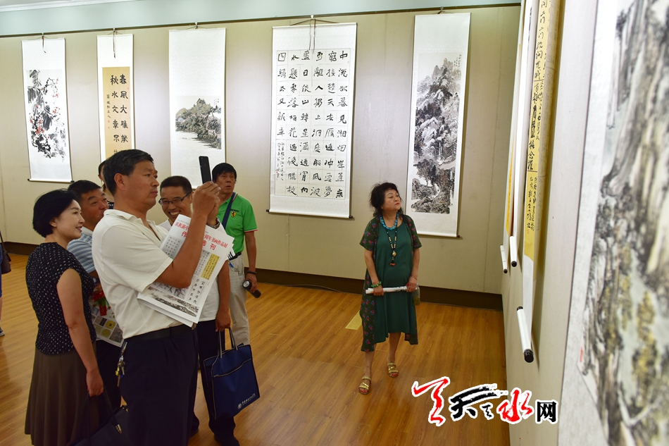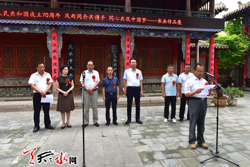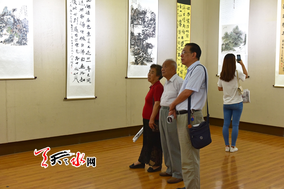 8月2日,农工党天水市委员会在市群艺馆举行庆祝新中国成立七十周年书画作品展。本次书画展遴选了10多位农工党界别书画家的120幅书画作品,作品主题鲜明、内容生动、时代感强,讴歌新中国70年来在中国共产党领导下取得的辉煌成就,充分反映了农工党党员紧跟时代、热爱生活、追求艺术、提升自我的精神风貌。市政协副主席屈光平出席开展仪式并观看了书画展。 全媒体记者 周文涛 摄