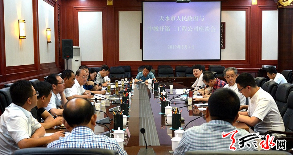 天天天水网讯【全媒体记者赵蔓】8月4日下午,市政府与中城开第二工程公司举行座谈会,双方就推动全市政文化旅游产业项目合作等事宜进行沟通交流。