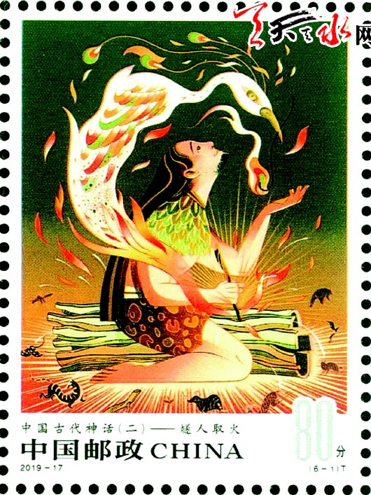 中国邮政集团公司天水市分公司集邮与文化传媒部张经理对记者说,神话是远古先民表现对自然及文化现象的理解与想象的故事。中国的神话是世界神话宝库中的珍品,很多神话人物,如大禹、神农、伏羲、女娲在民众中家喻户晓,代代相传。中国神话的特色鲜明,既反映了先民与自然的关系,呈现出古人对天地万物瑰丽的艺术想象,又深受儒家文明的影响,经历了道德化与历史化的改造。受此影响,中国神话还有着浓厚的人文精神,如《女娲补天》和《大禹治水》体现了对生民的忧患意识;《仓颉造字》和《伏羲画卦》折射了远古先民告别蒙昧、走向文明的进程;《神农尝百草》和《燧人取火》则体现了人们超越自然局限、主动掌握自身命运的努力。这次首发的《中国古代神话》(二)邮票设计采用插画的表现形式,线条精致细密,色彩绚烂富含张力。画面中东方传统的视觉元素与西方的表现技艺交相辉映,不仅具有强烈的视觉冲击力,还充满了浓郁的东方韵味。邮票印制采用高精度影写版印制,结合影写油墨高饱和度的特点,首次使用全真彩荧光油墨,在紫外光下,可以看到黄色油墨发绿色荧光,红色油墨发红色荧光,蓝色油墨发蓝色荧光,展现出五彩缤纷的梦幻效果。邮票图案上线条以变色珠光油墨印制,随着邮票角度的变换,这些线条也变得光润而灵动起来。此外,邮票的面值和边饰图案采用了特亮银的印制工艺。该套邮票设计和印制展现了中国邮票在弘扬传统和创新发展之间的融合。
