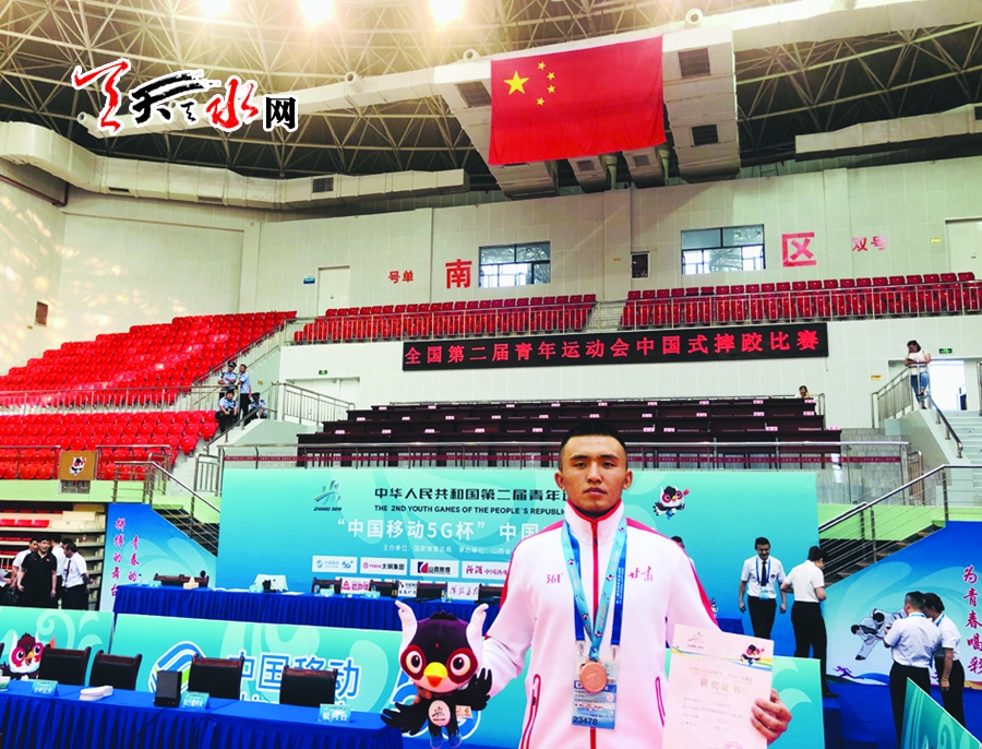 近日在山西太原结束的二青会国际式摔跤决赛阶段的比赛中,天水市体校马海权发挥稳定,夺得男子甲组55公斤级银牌。