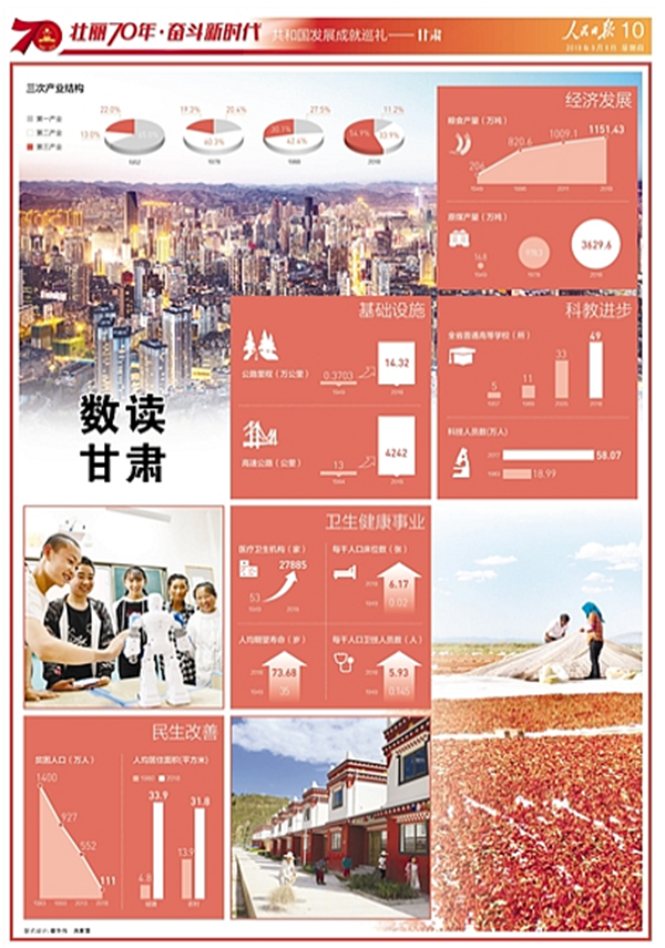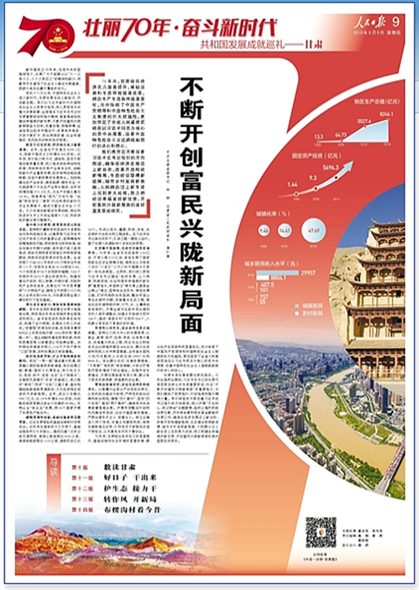 新中国成立70年来,在党中央的坚强领导下,甘肃广大干部群众以“人一之我十之、人十之我百之”的精神和毅力,用勤劳双手谱写了社会主义建设光辉篇章,陇原大地发生翻天覆地的变化。