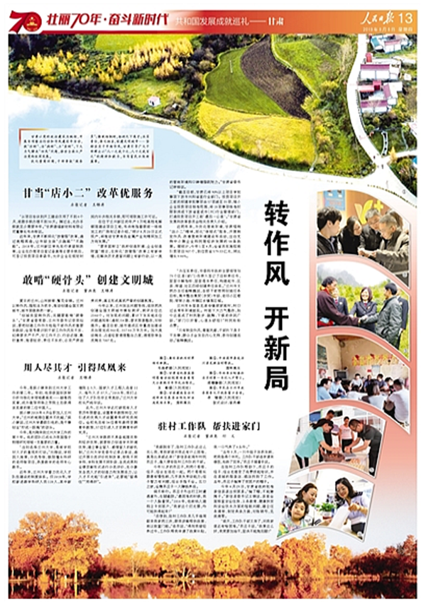 优化营商环境,干部争做“服务员”;勤栽梧桐树,招纳天下英才;压实责任,强化担当,创建文明城市……坚持在实干中转作风,甘肃引导广大干部群众以“人一之我十之、人十之我百之”的精神和毅力,书写富民兴陇新篇章。