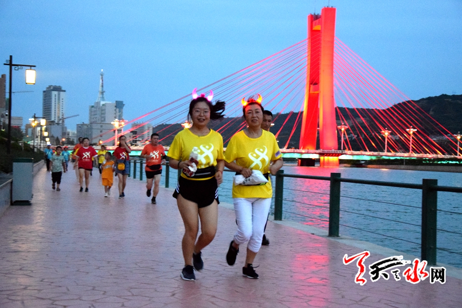 天天天水网讯(记者 刘晓亚 实习生陈绮珠)8月7日晚,2019"全民健身日"活动天水启动仪式暨第三届“天水--秦州杯”荧光夜跑在天水湖北岸激情开跑!