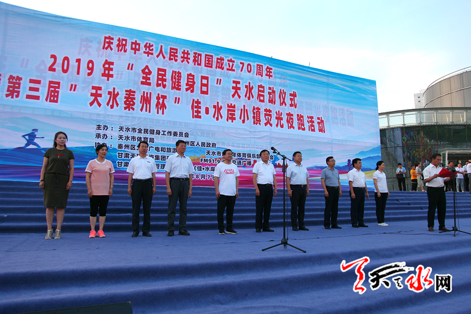 市委常委、秦州区委书记雷鸣宣布2019"全民健身日"活动天水启动仪式暨第三届“天水--秦州杯”荧光夜跑开跑,市委常委、宣传部部长张建杰出席启动仪式并讲话,市人大常委会副主任蒲朝晖出席启动仪式。