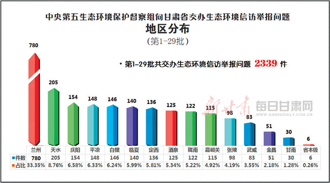 每日甘肃网兰州讯(新甘肃·甘肃日报记者文洁)8月10日,中央第五生态环境保护督察组向甘肃省移交了第二十九批生态环境信访举报问题共84件,其中来电44件,来信40件,涉及我省14个市(州)。