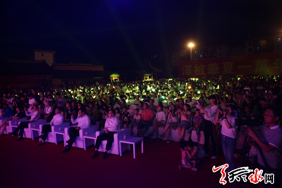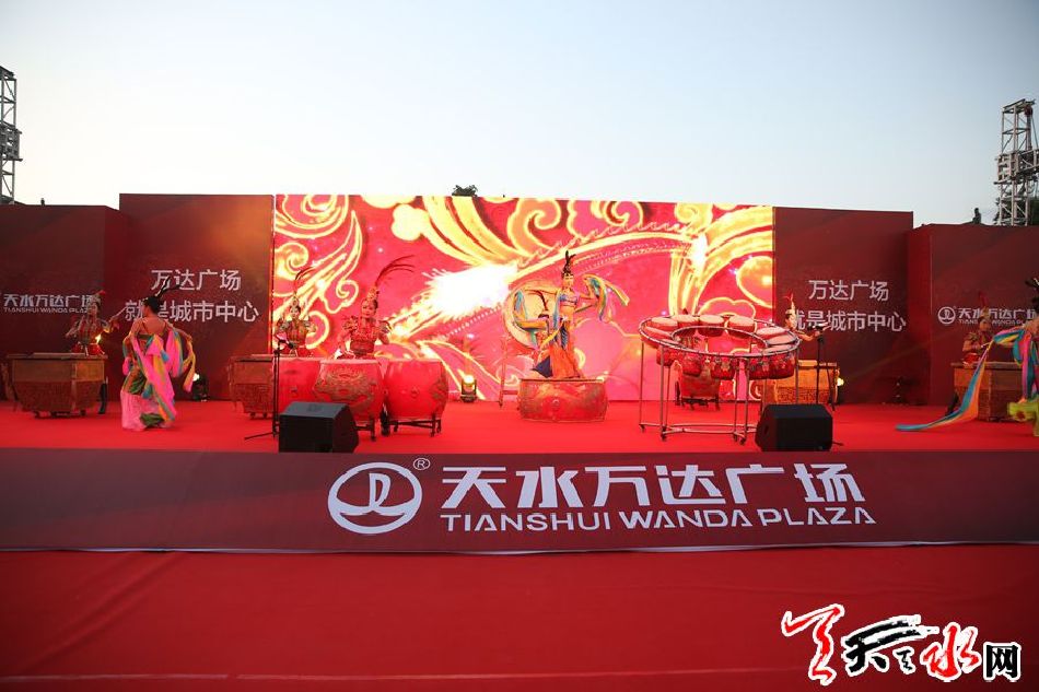 19点30分,天水万达品牌馆开放仪式正式开启,击缶与丝蕴鼓舞是力量与美的融合,现场观众沉浸在绚丽舞蹈之中。