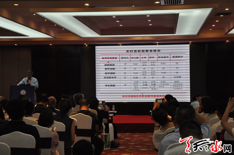 天天天水网讯(记者 刘晓亚)8月11日下午,在天水举行的以“用教育阻断贫困代际传递”为主题的首届中国西部教育发展论坛分别举行分论坛和圆桌讨论。 参加论坛的部分专家学者就如何进一步推动发展西部教育发表了赋予科学性、实践性的建议和意见。下午,参加论坛的学者专家就西部基础教育发展经验和反思;西部职业教育改革与发展前景;西部学前教育发展问题及解决方案;新教改下西部乡村教师培训的挑战与应对四个焦点问题进行了专题谈论和研判。