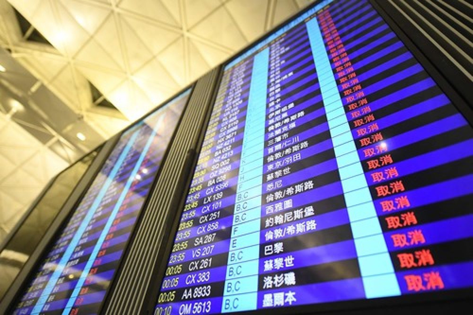 8月12日,这是香港机场大屏显示的航班状态。新华社记者 吕小炜摄
