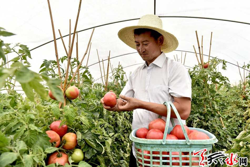 顺着平坦宽敞的310国道支线来到位于秦州区西南方向的牡丹镇马家川设施蔬菜基地,镇域内主河流稠泥河贯通全境,昼夜温差大、雨量充沛、土壤肥沃、交通便利,是较为理想的无公害蔬菜种植基地。从大路一侧的绿园种植农民专业合作社门口,记者碰到了刚运输蔬菜归来的社员唐玉才,他带着记者参观了合作社的大棚,只见成串的西红柿挂满了枝蔓。说话间,唐玉才摘下一颗递到记者眼前,咬上一口,甘甜沙瓤,鲜嫩多汁。“这是今年引进的新品种,味道很好,产量也好。”唐玉才笑着说道。