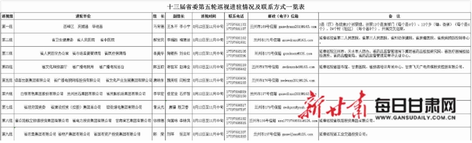 每日甘肃网8月16日兰州讯(新甘肃·甘肃日报记者张富贵)8月8日至16日,十三届甘肃省委第五轮巡视9个巡视组陆续完成进驻,正式开展工作。