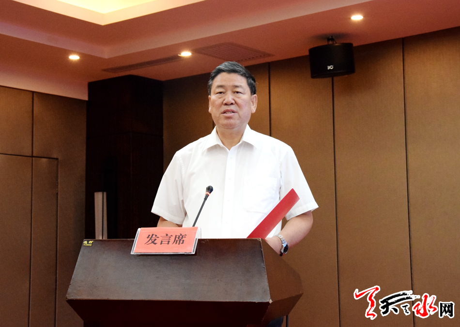 王军在致辞中说,近年来,天水市紧紧围绕实现“安全饮水有保障”目标,从2018年开始,市县区两级筹资7亿多元,按照“三年任务两年完成”的目标,组织实施农村饮水安全巩固提升工程。截至目前,2018年的85处农村饮水安全巩固提升工程全部建成,2019年的64处工程正在加快实施,预计9月底全部建成,届时将解决全市28.23万户129.8万人的饮水不稳定问题,为打赢打好脱贫攻坚战提供有力的供水保障。他表示,天水市将以此次现场推进会为契机,认真贯彻落实省委、省政府关于农村饮水安全工作的部署要求,积极学习借鉴兄弟市县的先进经验,全力加快巩固提升工程建设,进一步健全完善运行管护机制,扎实推进冲刺清零行动,全面提升农村饮水安全保障水平,确保农村饮水安全不落一户、不落一人,真正让安全之水、小康之水流到千家万户、造福人民群众。