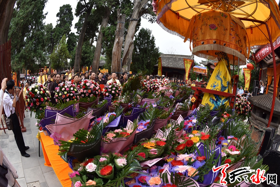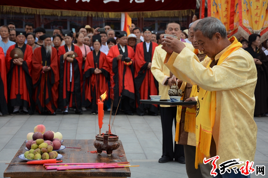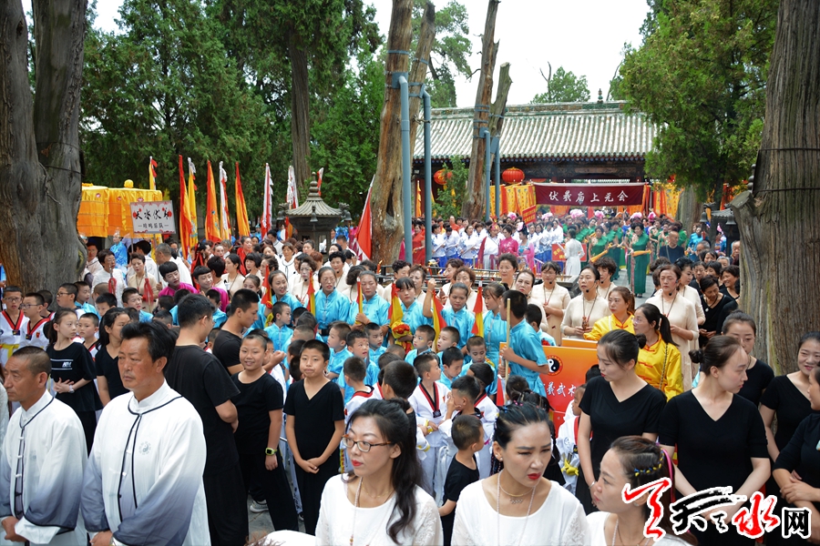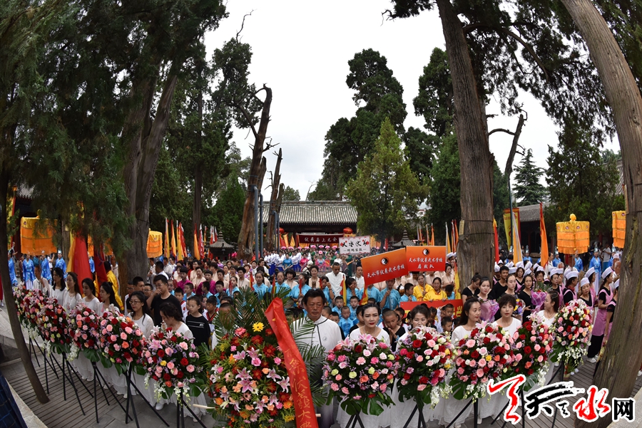 天天天水网讯(见习记者 杨心雅 )8月18日上午,伏羲庙内龙旗猎猎,祭乐声声。为更好地保护和传承国家级非物质文化遗产保护项目—“太昊伏羲祭典”礼仪,缅怀始祖精神,弘扬伏羲文化,打造羲皇故里世界华人寻根祭祖圣地,己亥(2019)年秋祭中华人文始祖太昊伏羲氏典礼于公历2019年8月18日至8月20日在天水伏羲庙举行,数千名市民和游客观看了仪式。
