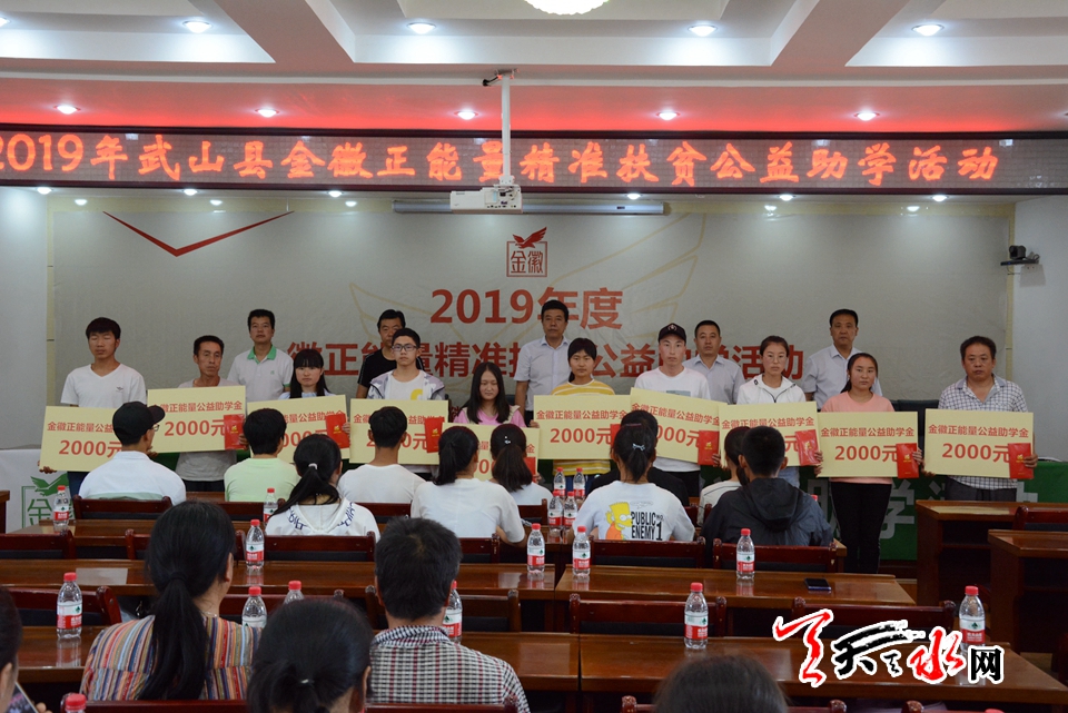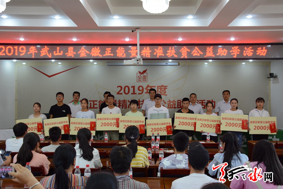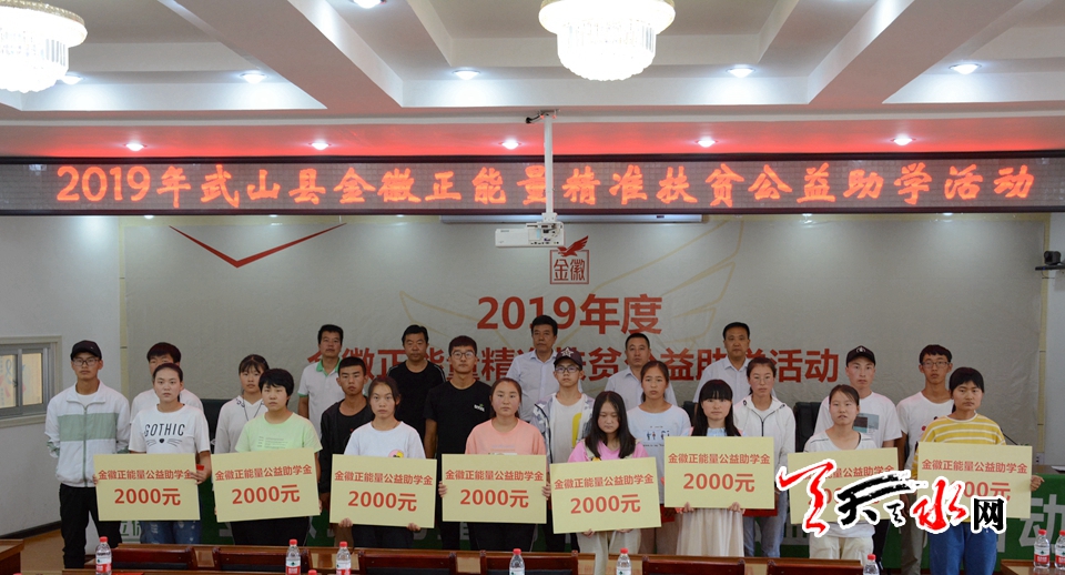 活动现场,来自武山县的20名优秀寒门学子每人获得由金徽正能量公益基金会提供的2000元的资助金,为他们顺利进入大学提供有效保障。