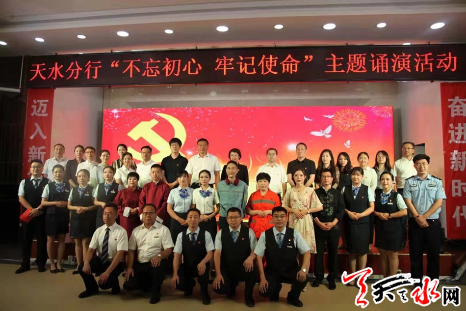 建行天水分行“不忘初心、牢记使命”主题诵演活动由该行员工自编自导自演,有的是从“零”起步,凭着对老英雄张富清的无比敬仰,积极参加到“不忘初心、牢记使命”主题教育中来,感染带动周围的同事,向英雄学习,“守初心、担使命”,必将为推进实施“三大战略”和实现“三个确保”,激励鞭策全行员工在开启“第二发展曲线”的实践中勇力潮头再出发、凝聚共识再探索、扩大影响再展示、厉兵秣马再奋进,努力把天水分行建设成甘肃建行全面发展优先行而加油鼓劲、助威添彩。