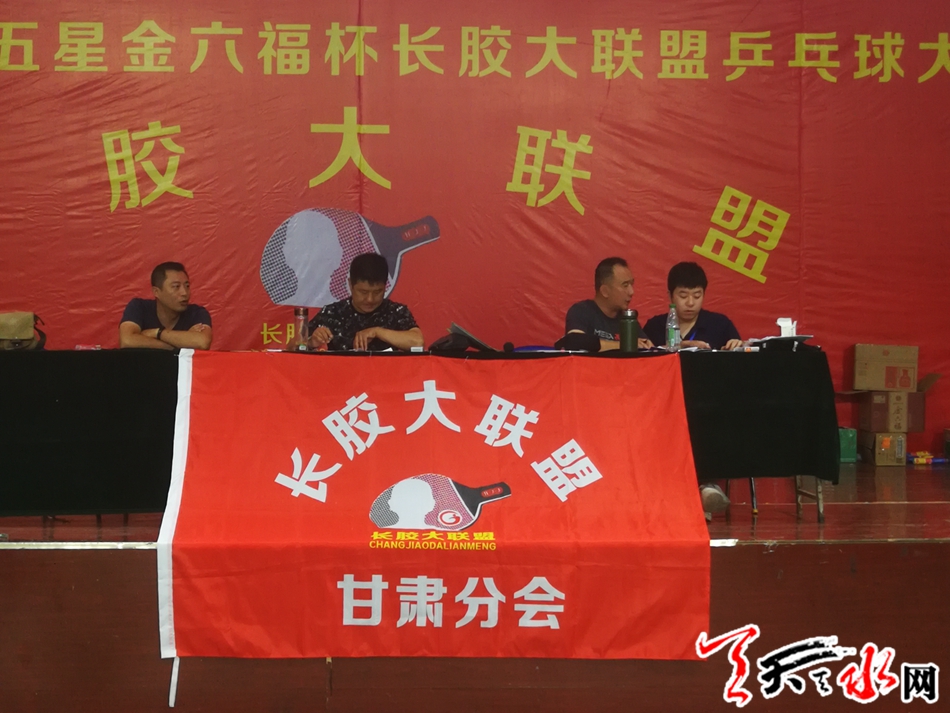 本次比赛由中国长胶大联盟总部主办,甘肃省长胶大联盟分会和天水市长胶大联盟分会承办,众一商贸有限公司康师傅饮品总代理和四川金六福酒业有限公司协办。比赛吸引了兰州、临夏、白银、武威、平凉、定西、张掖和天水等市州20多支代表队近120名长胶高手同场竞技,是近年来我省参赛范围最广、参赛人数最多、水平最高的一次长胶赛事。比赛项目为混合团体,每队前两名男选手(也可为女选手)须为长胶打法,每队三号选手不限打法。