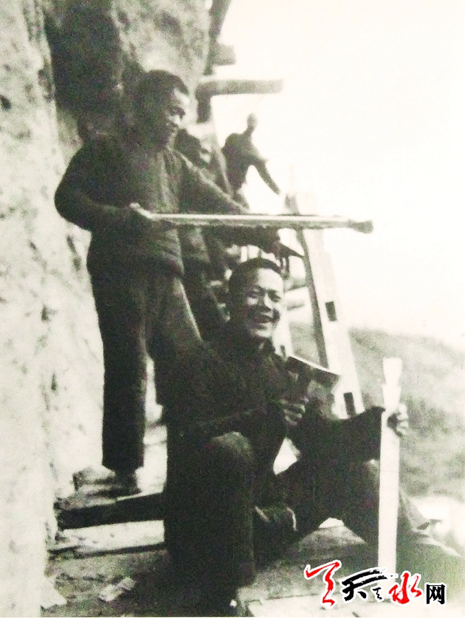 架设栈道工程是难以想象的艰险,当地组织的包括木工十六人的文得权小组在工作中发挥了高度的劳动热情、智慧和勇敢。文得权、王正明、温怀珠等曾经以一根索和一块板,凭着残留木桩或桩眼,攀登到五六十公尺高的悬崖上,开辟了飞栈的路线。