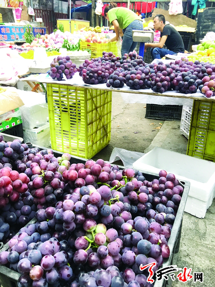 近来,随意在我市市内各个水果摊点都能看见本地葡萄在销售。