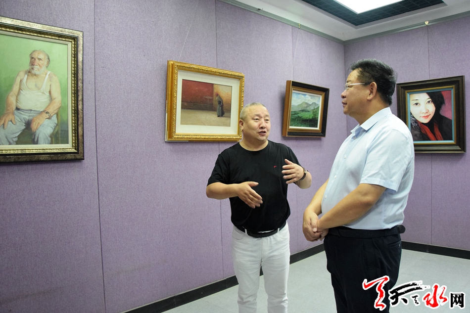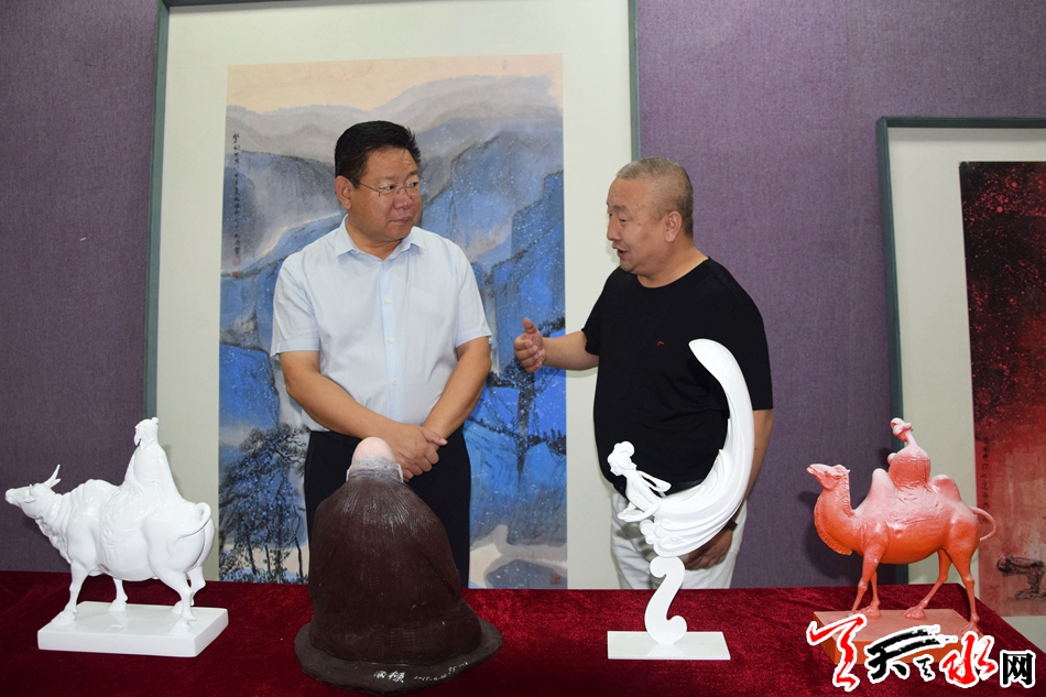 天天天水网讯【全媒体记者 李欣桐】8月26日,市委常委、宣传部部长张建杰来到市书画院参观了正在展出的“不忘初 牢记使命”单国栋艺术之路巡展第六站(天水)展作品。